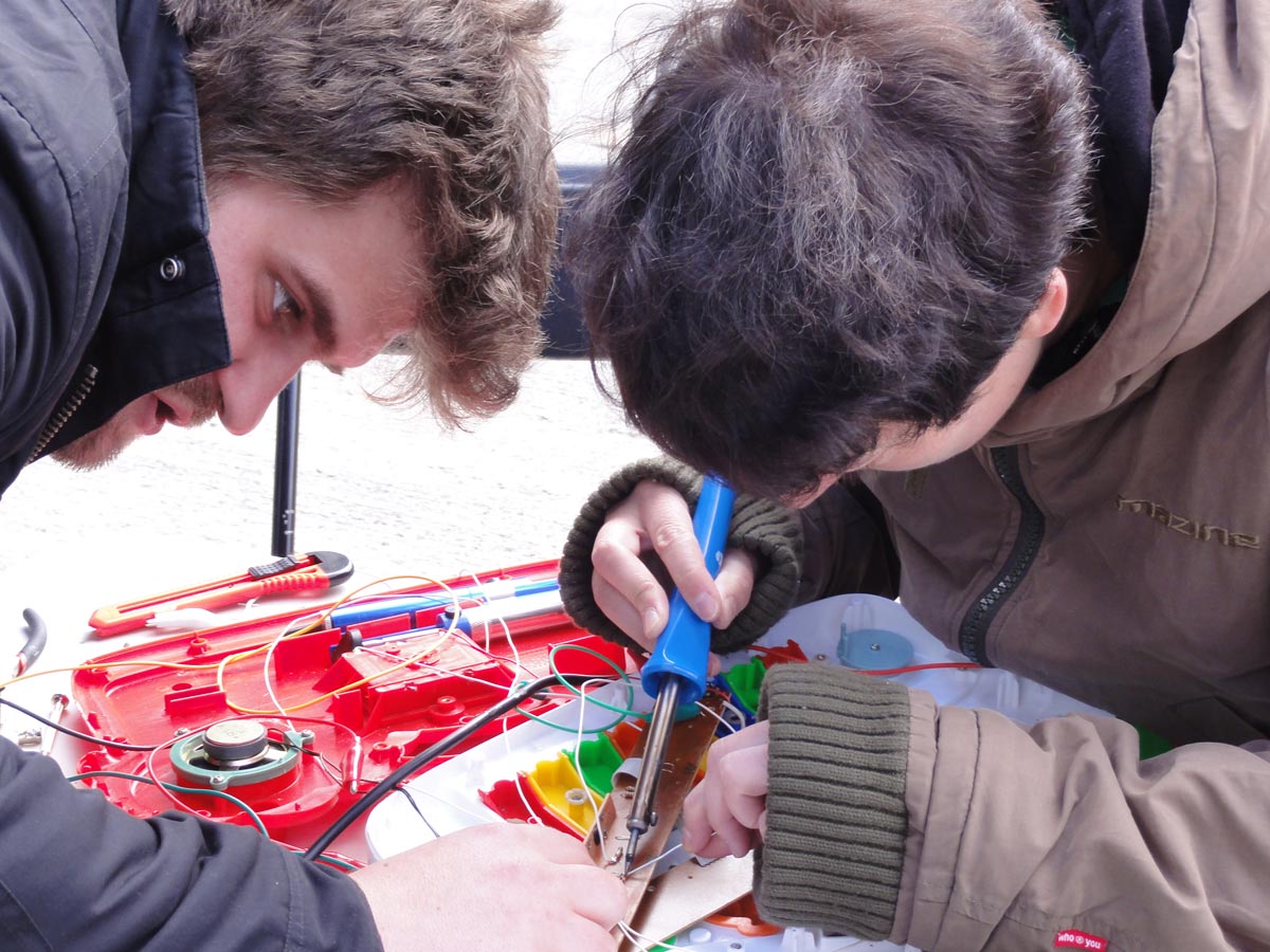 In this workshop we will show you how to modify gadgets and how to turn them from plain nuisance to a tool of glitchy, noisy awesomeness. The techniques shown are pretty easy -- even for the unexperienced in electronics. All you need is to be willing to make mistakes, repeatedly pop batteries in and out in order to reset things after crashing the processor, and a desire to make cool new stuff.