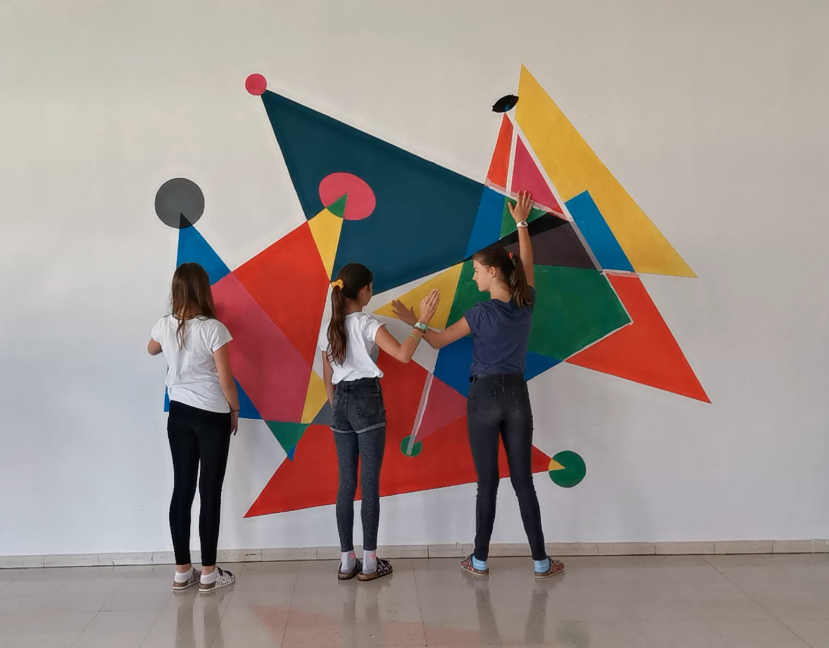 The sound art wall will be realized together with students on an area of 6 X 2 meters in the form of colorfully painted geometric surfaces in combination with sensors, electronics and loudspeakers. If one of the colored shapes is touched, a calm sound is created. If several students and / or teachers touch the sound forms at the same time, or if a slow vertical movement is carried out by hand, the tones merge and mix to form a unique sound composition.