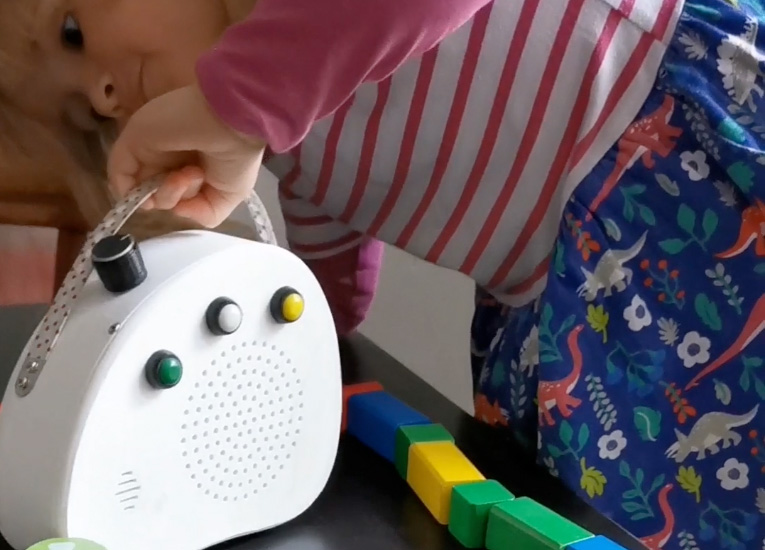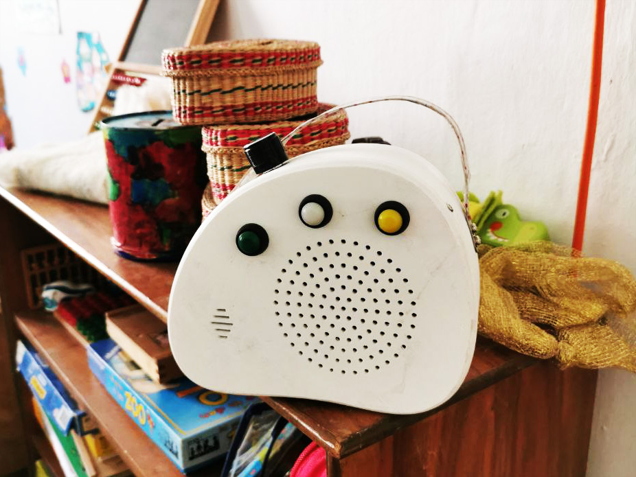 Caroline hat nun die Möglichkeit mittels RFID-Karten die Hörspiele und Musiklisten selbst auszuwählen und abzuspielen. Mit dem Lautstärkeregler kann sie problemlos das Gerät einschalten und die Lautstärke anpassen, die drei Knöpfe auf der Vorderseite ermöglichen es ihr die Stücke zu pausieren, oder sich in den Musik/Hörspiellisten vor oder zurück zu bewegen. Wir haben einen alten Samsung Handyakku eingebaut, welcher sich mit einem USB Mini auf der Rückseite laden lässt. Die Musik/Hörspiellisten befinden sich auf einer Micro SD Karte, die sich jederzeit von der Rückseite entfernen lässt und erweitert werden kann. Das Gehäuse habe ich mit Autodesk Fusion 360 entworfen und nach einigen Entwurfsänderung, ich habe noch einige Halterungen der Komponenten eingebaut, mit einem Anycubic 3D Drucker gedruckt.