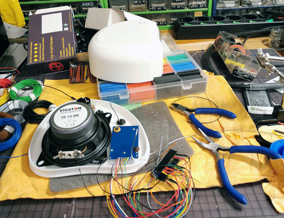 Nachdem meine vierjährige Tochter zu einer Youtube Dirigentin geworden ist und ich nicht immer Lust habe ihr die gewünschten Lieder und Hörspiele herauszusuchen, habe ich auf Basis des TonUINO Set von AZ-Delivery, angeregt von Familie Voss das Carophone realisiert.