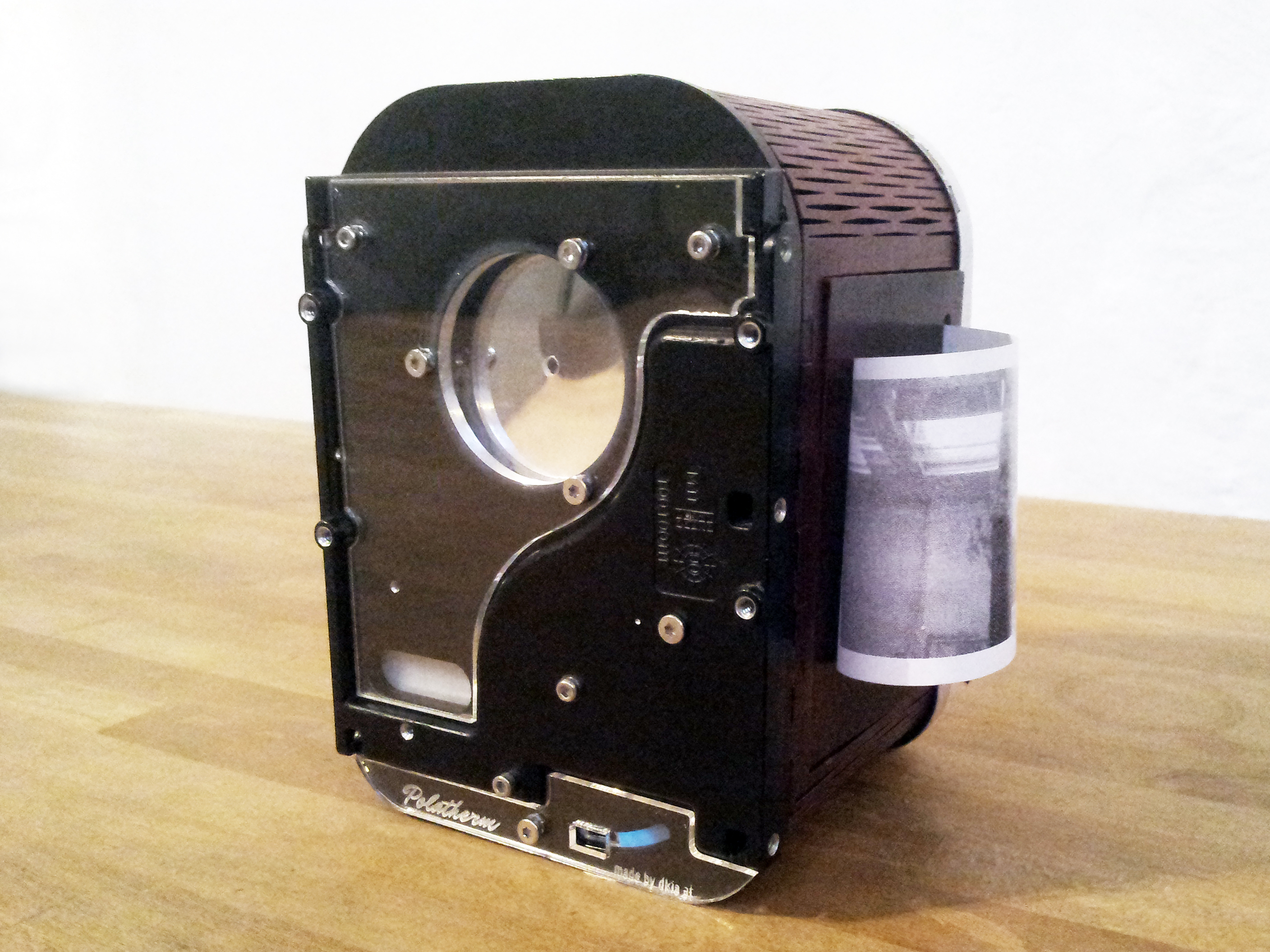Polatherm ist eine selbstentwickelte Sofortbildkamera auf Basis des Thermodruckverfahrens. Das Foto wird direkt nach der Aufnahme in schwarz-weiß ausgedruckt.