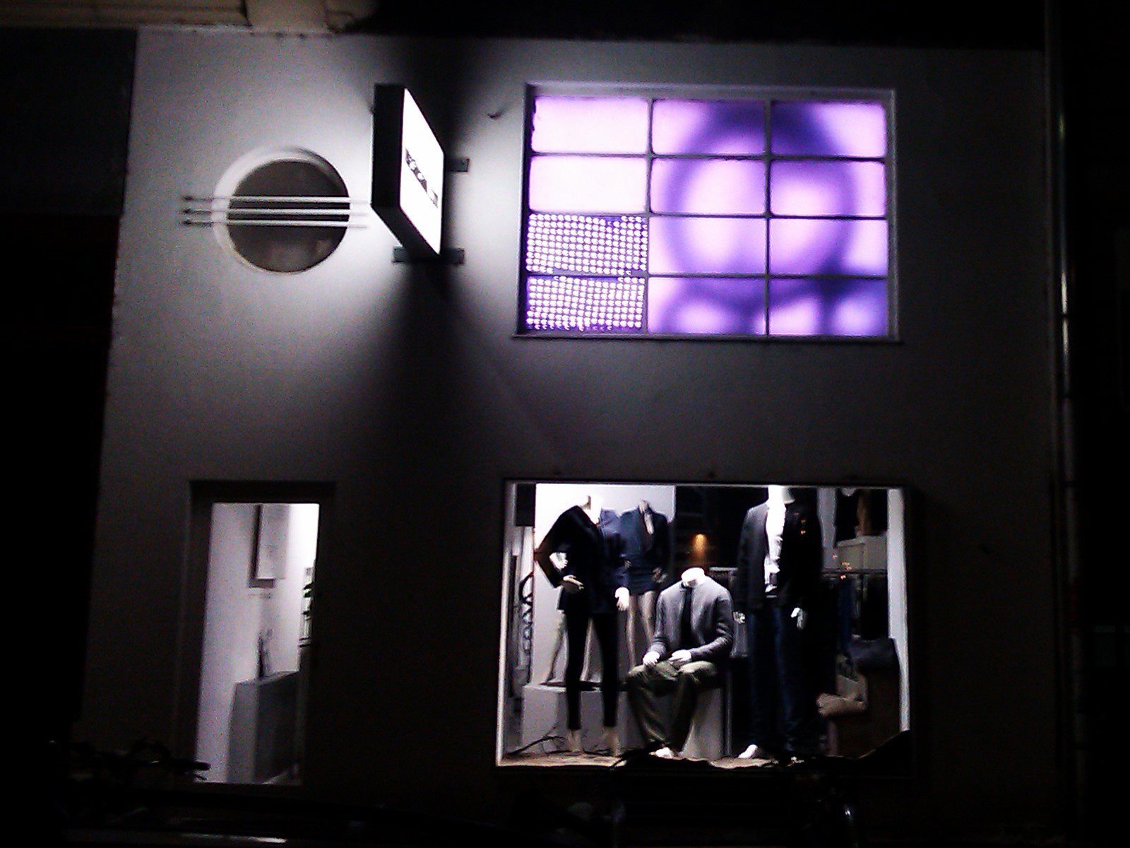 Upload your visuals on youtube, send the link via mail or facebook to useabrand (office[at]useabrand.com) – we will display the best visuals on the useabrand shopwindow based in Zollerngasse 15, 1070 Vienna right across famous szene club´s like: “Europa”, “Sapa” or “st.art”! Submission deadline is next Thursday (20.01.2011)! Till the end of January 2011 we realized in cooperation with useabrand a lighting installation using a high resolution, full-color 3,20m x 2,40m (64×48 pixel) LED Display. Please note that the resolution of the LED Display is only 64×48 pixel and some are covered by the wall. (we prefer monochrom slowmotion visuals) Have fun ;) In cooperation with useabrand dkia.at realized a lighting installion using a high resolution, full-color 64×48 pixel LED Display in the store of useabrand, based in Zollerngasse 23, 1070 Vienna. This LED installation is planned as an exhibitition platform for various visual artists. The first visuals are made by Nora Dibowski. The control system was developed by Simon Laburda and is based on LEDBridge which is running on a Sheevaplug embedded Linux system. This contributes to the whole systems power efficiency – with all LEDs at full brightness the peak power consumtion is 125 watts. The current animations use around 40-60 watts – no more than a single incandescent lightbulb! Also the system is designed in a flexible manner, when artists create new videos, these videos can simply be copied to the Sheevaplugs SD-card and will be automatically played on the LED Display.