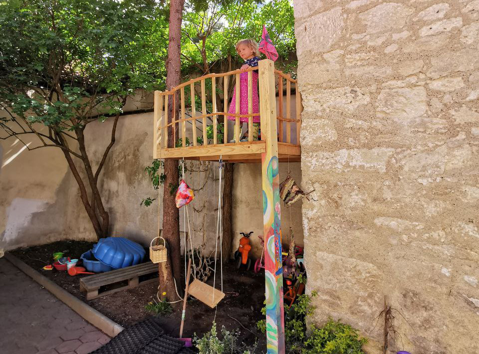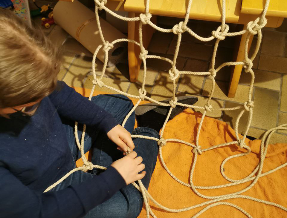 Im April 2020 ist eine Kinderbank für mehrere Kinder entstanden, auch die Plattform für ein Baumhaus wurde konstruiert. Mittlerweile (Stand 09/2020) ist das Baumhaus mit einer Schaukel, einem selbstgeknüpften Kletternetz, Leiter und einem transparenten Dach erweitert worden. Ich denke ab Frühjahr 2021 geht es weiter ...