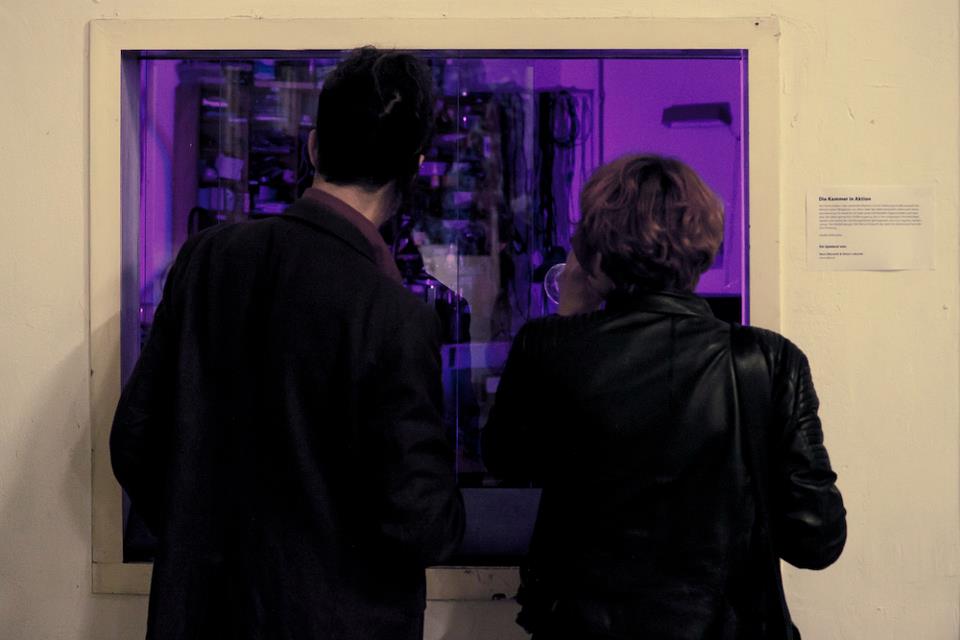 Nora Dibowski und Simon Laburda haben aus alter Hardware kleine musizierende, leuchtende und kinetische Einheiten gebaut und sie in ihrer Werkstatt so plaziert, dass sie über das Sichtfenster von aussen gut erkennbar waren. Durch eine eine alte Telefonwählscheibe konnten die Einheiten angesteuert werden. Durch Zahlenkombinationen entstanden einzigartige akkustische und visuelle Kompositionen.