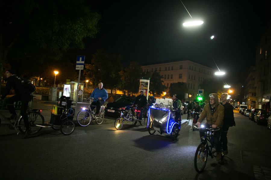 Gemeinsam mit dem CycleCinemaClub sind wir auf dem Urbanize! Festival mit Fahrrädern am 12.10.2013 gegen 21:30 Uhr startend von der Festivalzentrale des Festivals (am Hundsturm, Margaretenstrasse 166) quer duch die Stadt in Aktion getreten.