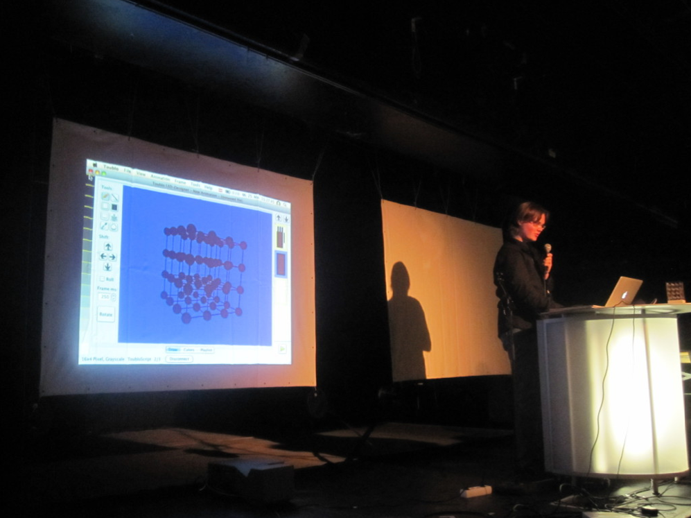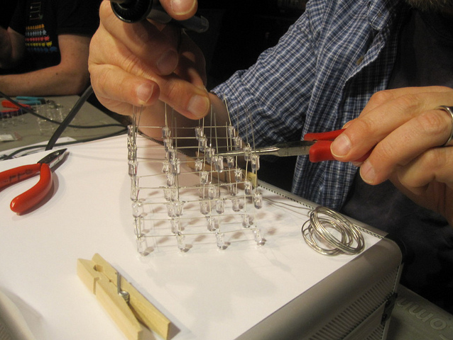 There are two modes of operation of the LED-Cube. Either the cube can be interfaced by a PC or it can work as an Arduino. In direct PC-mode the Arduino is completely disabled, therefore you are always able to access the cube via the PC, not depending on any specifiy sketch loaded onto the Arduino chip. To control the cube via your PC you can use the open source Toublo Animation Editor which you can download from http://www.dkia.at/downloads/ or build from source. LED Swarmcube Animation Software Tutorial (OS X) To work with the Arduino-Chip you can use the regular Arduino software which you can get from www.arduino.cc – you just have to pick the right serial port and select the Lilypad Arduino as the target. The Lilypad has to be selected because, like this cube, it runs on only 8MHz instead of 16MHz. We will collect Arduino sketches on our website www.dkia.at to share und exchange thoughts and ideas.